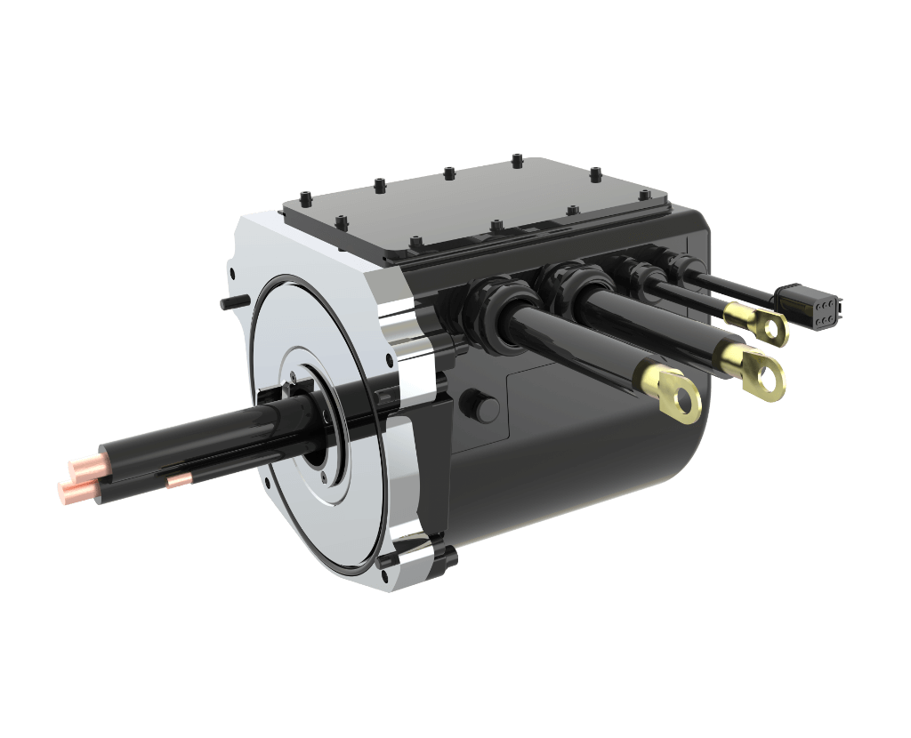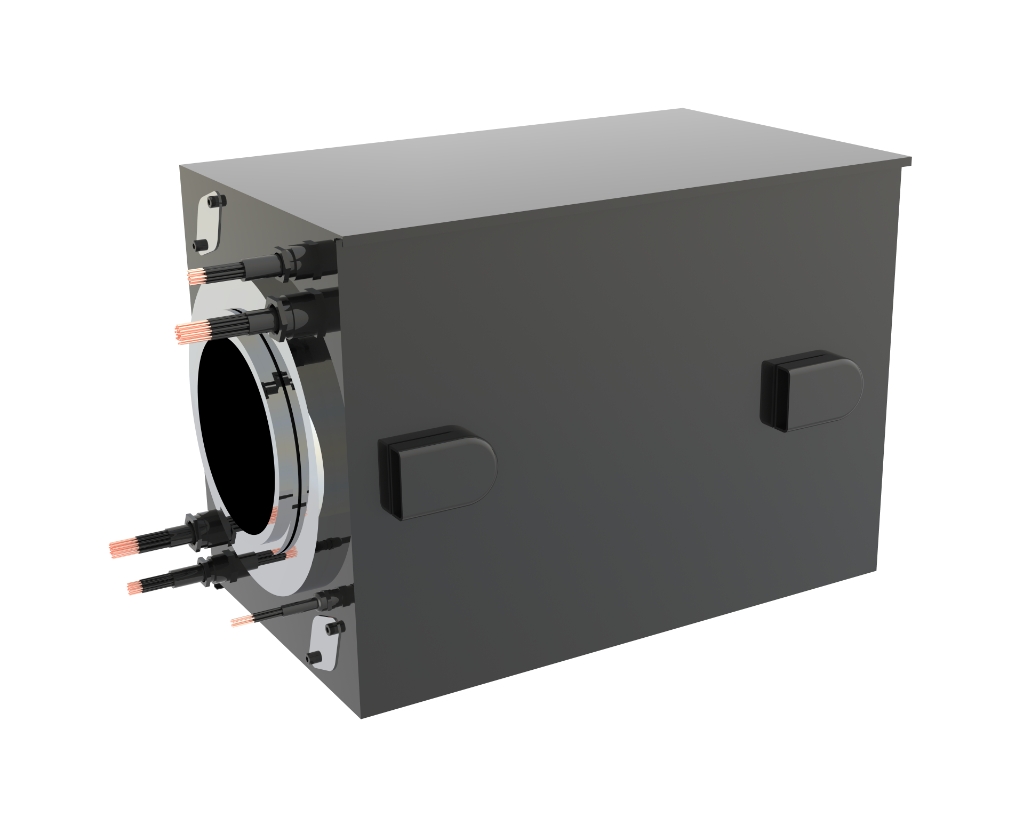 Electric slip rings for electric machines. They are designed for full electric machinery, capable of handling power signals up to 560A (10 minutes at maximum power followed by a 60-minute cooldown cycle at 20% of the available power). They can be configured with digital CANbus signals and offer protection ratings up to IP66.