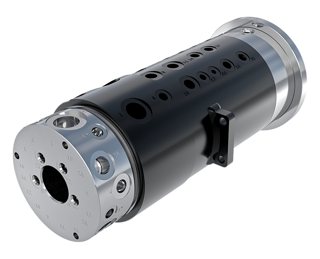 The primary characteristics of these fluid turning joints are the high number of passages, the high pressure and capacity and mainly the fluids transferred. Various fluids can be found in a single joint: hydraulic oil, air, R134a gas (freon) and liquid coolant (water and glycol).