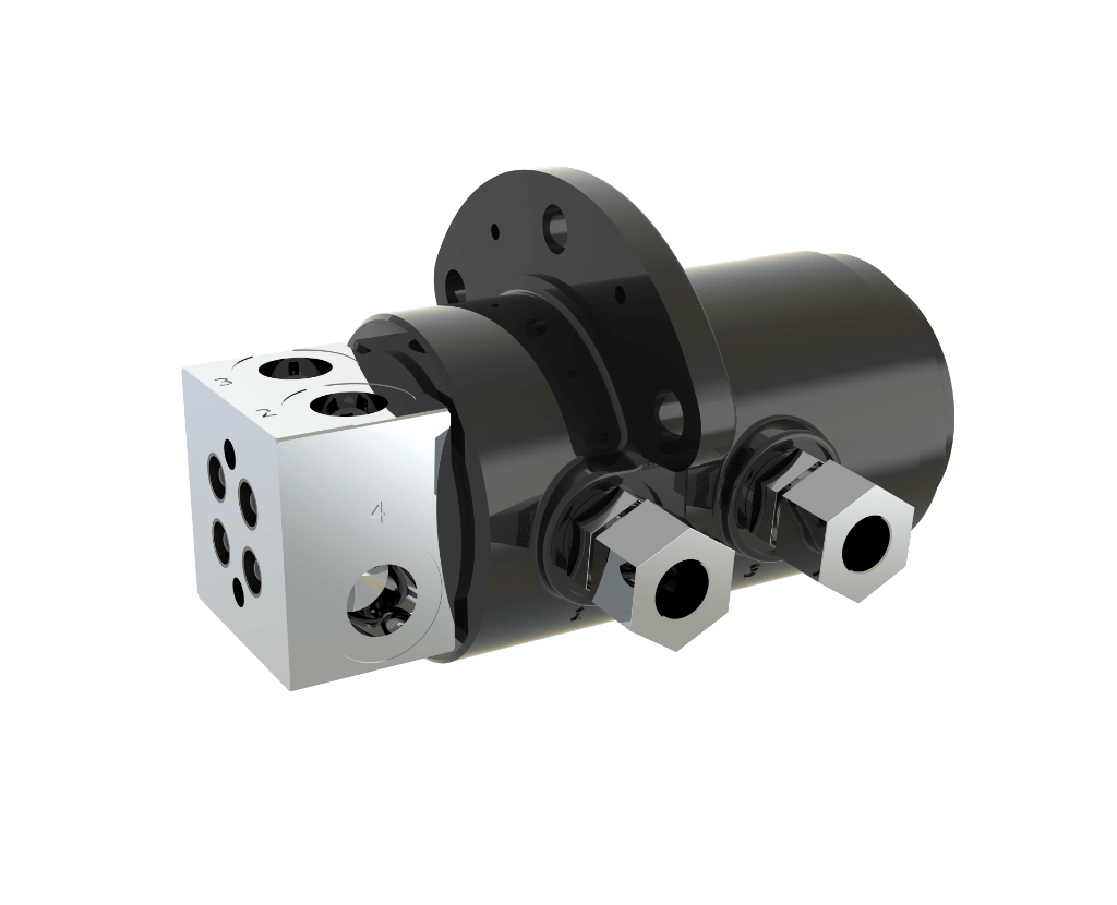 Hydraulic swivel joints for tracked excavators, robust and long lasting over time, suitable for withstanding the intense operation of earthwork machinery.