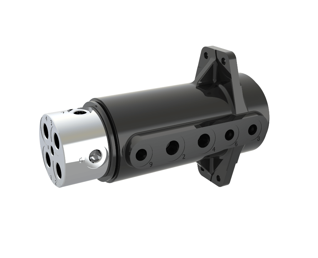 Hydraulic swivel joints for tracked excavators, robust and long lasting over time, suitable for withstanding the intense operation of earthwork machinery.
